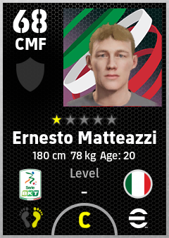 . Ernesto Matteazzi is a Center Midfielder footballer from Italy who plays for Entella Ba in eFootball 2026.