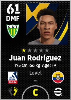 . Juan Rodríguez is a Defensive Midfielder footballer from Ecuador who plays for Cd Tondela in eFootball 2026.