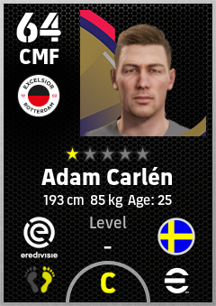 . Adam Carlén is a Center Midfielder footballer from Sweden who plays for Excelsior Rotterdam in eFootball 2026.