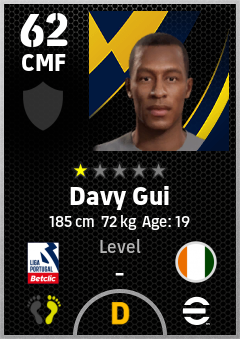 . Davy Gui is a Center Midfielder footballer from Côte D'ivoire who plays for Fc Alverca in eFootball 2026.