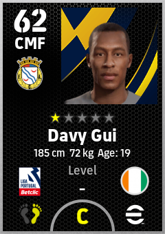 . Davy Gui is a Center Midfielder footballer from Côte D'ivoire who plays for Fc Alverca in eFootball 2026.