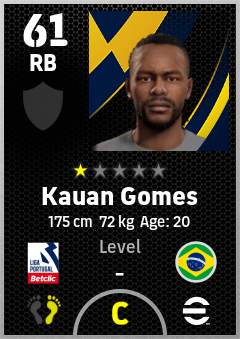 . Kauan Gomes is a Right Back footballer from Brazil who plays for Fc Alverca in eFootball 2026.