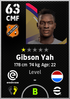 . Gibson Yah is a Center Midfielder footballer from Netherlands who plays for Fc Volendam in eFootball 2026.