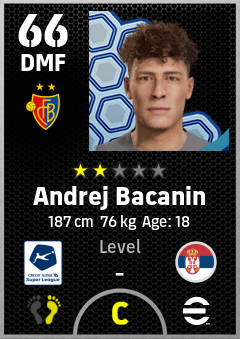 . Andrej Bacanin is a Defensive Midfielder footballer from Serbia who plays for Basel Rb in eFootball 2026.