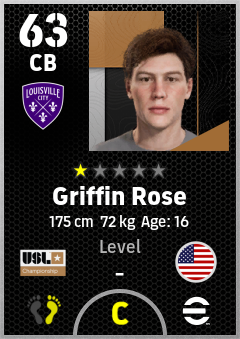 . Griffin Rose is a Center Back footballer from United States who plays for Louisville City Fc in eFootball 2026.