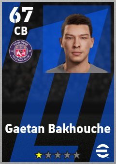 . Gaetan Bakhouche is a Center Back footballer from France who plays for Toulouse Fc in eFootball 2026.