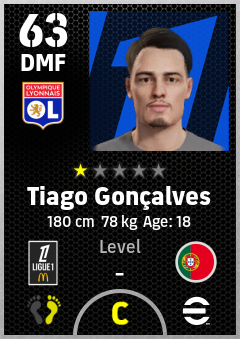 . Tiago Gonçalves is a Defensive Midfielder footballer from Portugal who plays for Olympique Lyonnais in eFootball 2026.