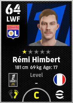 . Rémi Himbert is a Left Wing Forward footballer from France who plays for Olympique Lyonnais in eFootball 2026.