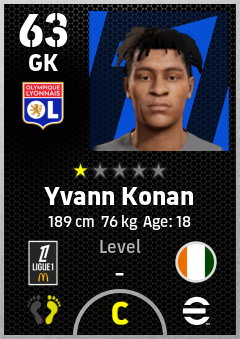 . Yvann Konan is a Goalkeeper footballer from Côte D'ivoire who plays for Olympique Lyonnais in eFootball 2026.
