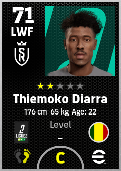 . Thiemoko Diarra is a Left Wing Forward footballer from Mali who plays for Stade De Reims in eFootball 2026.