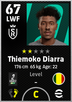 . Thiemoko Diarra is a Left Wing Forward footballer from Mali who plays for Stade De Reims in eFootball 2026.