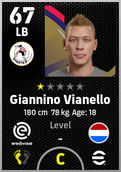 . Giannino Vianello is a Left Back footballer from Netherlands who plays for Sparta Rotterdam in eFootball 2026.