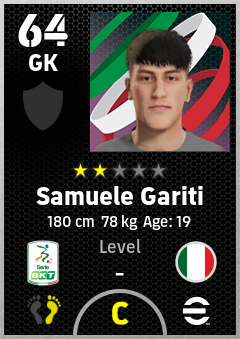 . Samuele Gariti is a Goalkeeper footballer from Italy who plays for Entella Ba in eFootball 2026.
