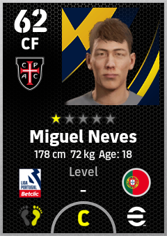 . Miguel Neves is a Center Forward footballer from Portugal who plays for Casa Pia Ac in eFootball 2026.