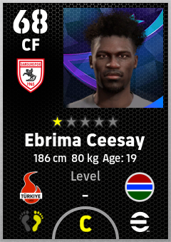 . Ebrima Ceesay is a Center Forward footballer from The Gambia who plays for Samsunspor in eFootball 2026.