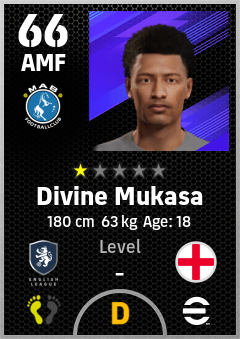 . Divine Mukasa is a Attacking Midfielder footballer from England who plays for Manchester B in eFootball 2026.
