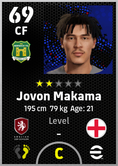 . Jovon Makama is a Center Forward footballer from England who plays for Norwich Yg in eFootball 2026.