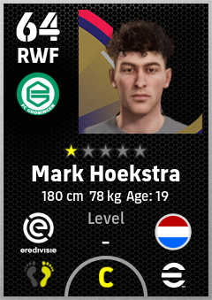 . Mark Hoekstra is a Right Wing Forward footballer from Netherlands who plays for Fc Groningen in eFootball 2026.