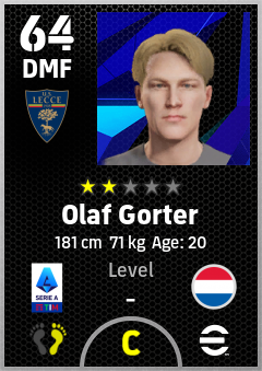 . Olaf Gorter is a Defensive Midfielder footballer from Netherlands who plays for Lecce Gr in eFootball 2026.