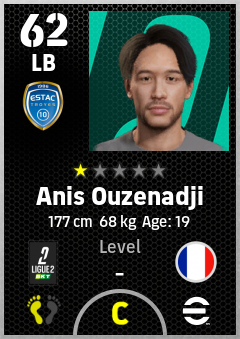 . Anis Ouzenadji is a Left Back footballer from France who plays for Estac Troyes in eFootball 2026.