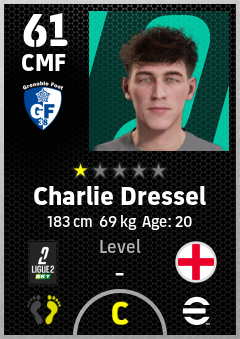 . Charlie Dressel is a Center Midfielder footballer from England who plays for Grenoble Foot 38 in eFootball 2026.