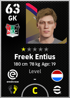 . Freek Entius is a Goalkeeper footballer from Netherlands who plays for N.e.c. Nijmegen in eFootball 2026.