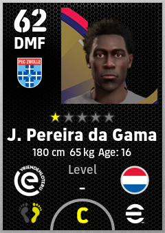 . J. Pereira Da Gama is a Defensive Midfielder footballer from Netherlands who plays for Pec Zwolle in eFootball 2026.