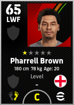 . Pharrell Brown is a Left Wing Forward footballer from England who plays for Free in eFootball 2026.