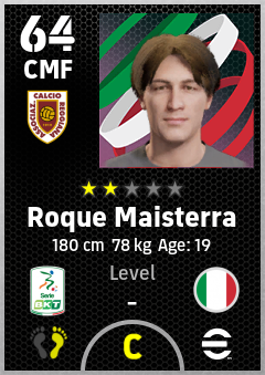 . Roque Maisterra is a Center Midfielder footballer from Italy who plays for Reggio Emilia G in eFootball 2026.