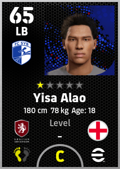 . Yisa Alao is a Left Back footballer from England who plays for Sheffield Bw in eFootball 2026.