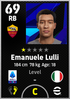 . Emanuele Lulli is a Right Back footballer from Italy who plays for Roma Gr in eFootball 2026.