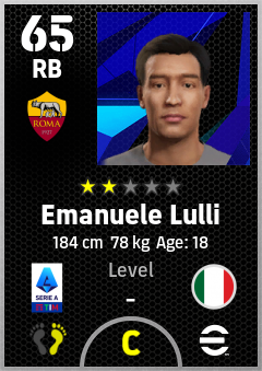 . Emanuele Lulli is a Right Back footballer from Italy who plays for Roma Gr in eFootball 2026.