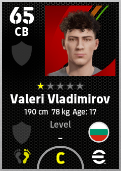 . Valeri Vladimirov is a Center Back footballer from Bulgaria who plays for Free in eFootball 2026.