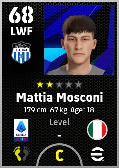 . Mattia Mosconi is a Left Wing Forward footballer from Italy who plays for Internazionale Milano in eFootball 2026.