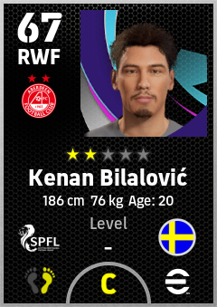 . Kenan Bilalović is a Right Wing Forward footballer from Sweden who plays for Aberdeen Fc in eFootball 2026.