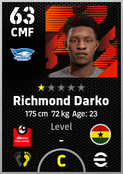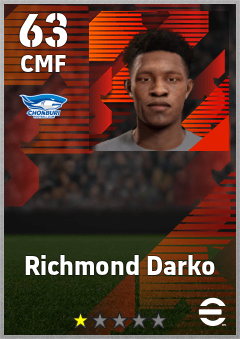 . Richmond Darko is a Center Midfielder footballer from Ghana who plays for Chonburi Fc in eFootball 2026.