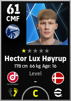 . Hector Lux Høyrup is a Center Midfielder footballer from Denmark who plays for Randers B in eFootball 2026.