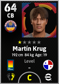 . Martín Krug is a Center Back footballer from Panama who plays for Levante Ra in eFootball 2026.