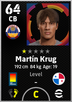 . Martín Krug is a Center Back footballer from Panama who plays for Levante Ra in eFootball 2026.