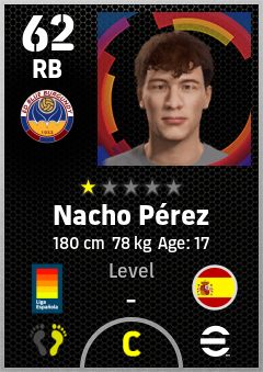 . Nacho Pérez is a Right Back footballer from Spain who plays for Levante Ra in eFootball 2026.