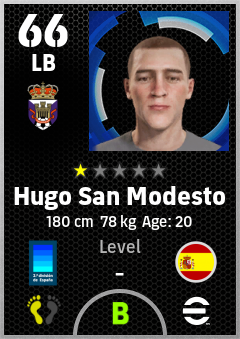 . Hugo San Modesto is a Left Back footballer from Spain who plays for Valladolid Mb in eFootball 2026.