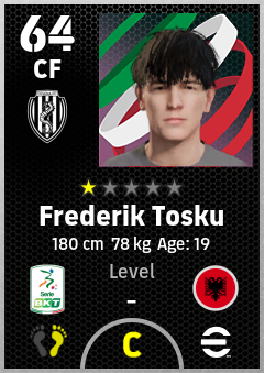 . Frederik Tosku is a Center Forward footballer from Albania who plays for Cesena Bn in eFootball 2026.