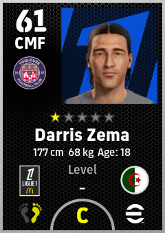 . Darris Zema is a Center Midfielder footballer from Algeria who plays for Toulouse Fc in eFootball 2026.