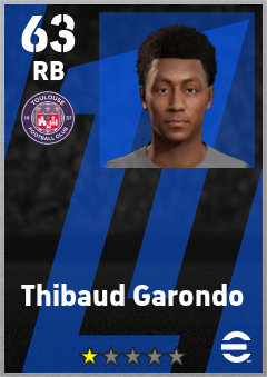 . Thibaud Garondo is a Right Back footballer from France who plays for Toulouse Fc in eFootball 2026.