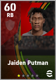 . Jaiden Putman is a Right Back footballer from England who plays for Free in eFootball 2026.
