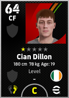 . Cian Dillon is a Center Forward footballer from Republic Of Ireland who plays for Free in eFootball 2026.