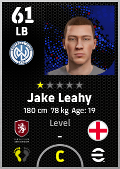 . Jake Leahy is a Left Back footballer from England who plays for Queen's Park Bw in eFootball 2026.