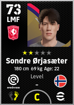. Sondre Ørjasæter is a Left Midfielder footballer from Norway who plays for Fc Twente in eFootball 2026.
