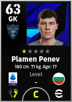 . Plamen Penev is a Goalkeeper footballer from Bulgaria who plays for Lecce Gr in eFootball 2026.