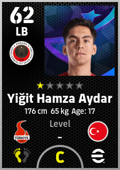 . Yiğit Hamza Aydar is a Left Back footballer from Türkiye who plays for Gençlerbirliği Sk in eFootball 2026.